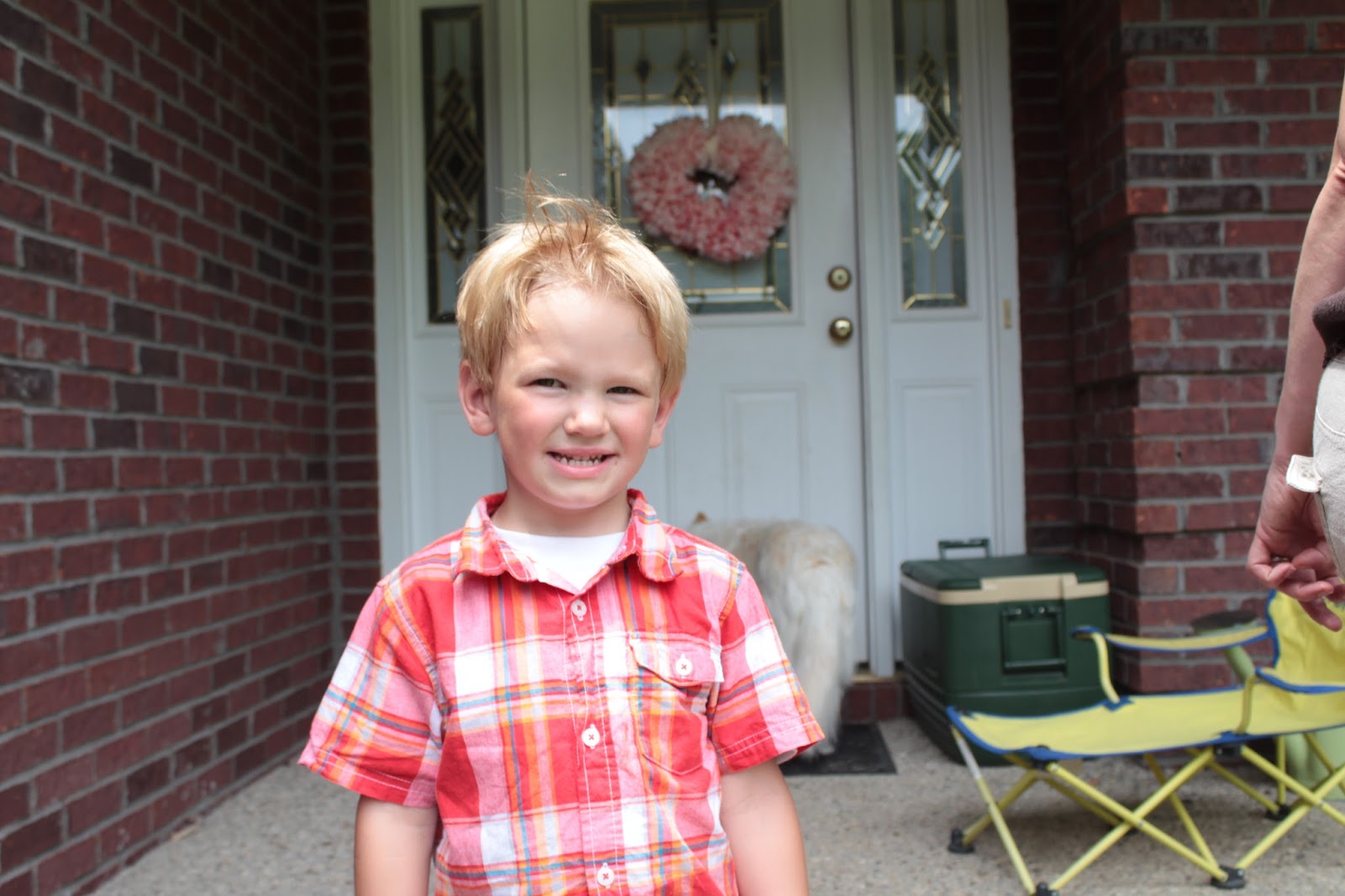 (Titus didn't want to swim, but loved being sprayed with the hose.)